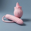 Vibrador en forma de rosa con doble motor independiente. Combina 10 modos de succión licking con 7 patrones de vibración para estimulación clitoral y vaginal simultánea. Silicona médica premium y diseño ergonómico discreto.